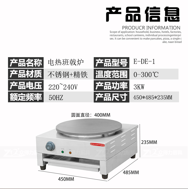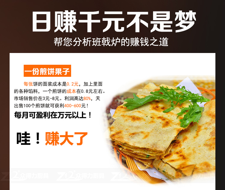 班戟爐是一種恒溫加熱,速熱快的美食設(shè)備,整機(jī)外殼采用優(yōu)質(zhì)不銹鋼材質(zhì),板材厚,加熱盤采用生鐵鍛造,表面光滑,食品級不粘涂層拋光處理,可加工制作各種煎餅。