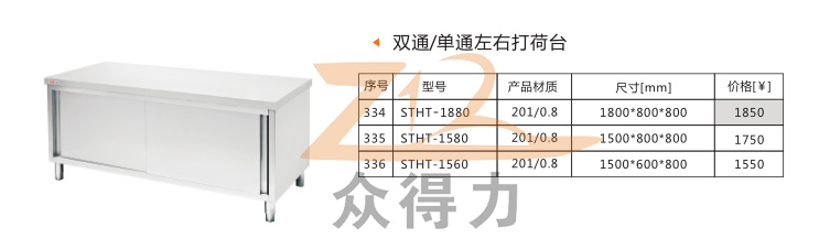 江西眾得力廚具有限公司生產(chǎn)銷售食品機械、商用廚具,為您提供中央廚房整體解決方案而不斷努力,打荷臺系列分為雙通系列單通系列、暖碟系列、翻門系列,標(biāo)準(zhǔn)尺寸為1.8米*800mm和1.5米*800mm兩種規(guī)格,歡迎選購。