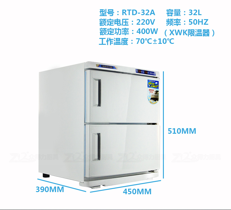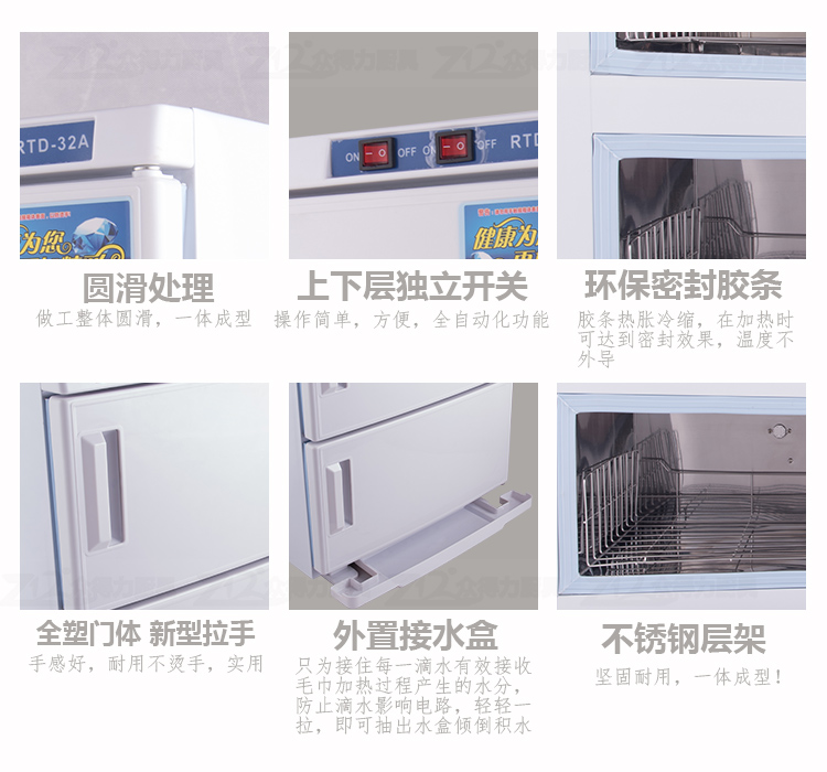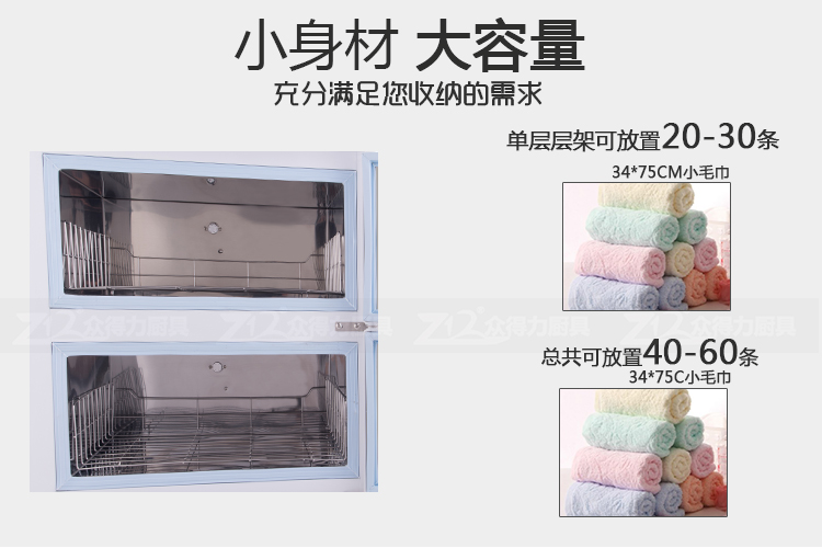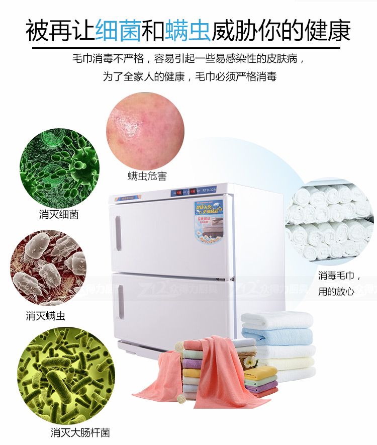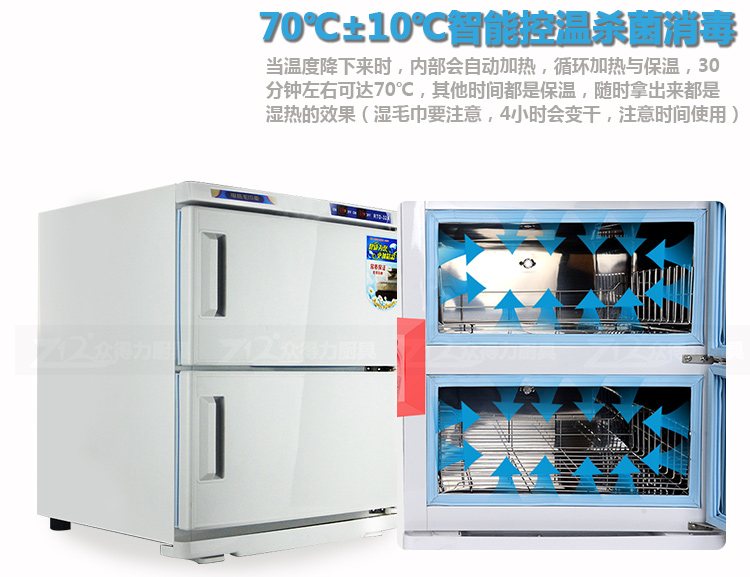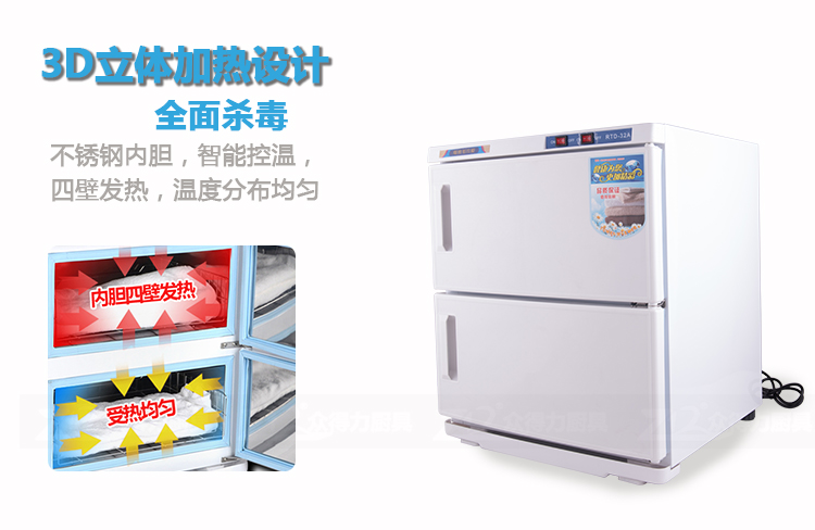 本產品中溫加熱,保溫保濕,毛巾消毒,不再讓細菌和螨蟲威脅您家人的健康和客戶的健康。不銹鋼內膽,智能溫控,四壁發(fā)熱,溫度分布均勻。