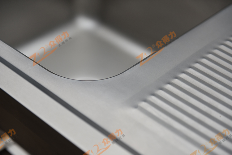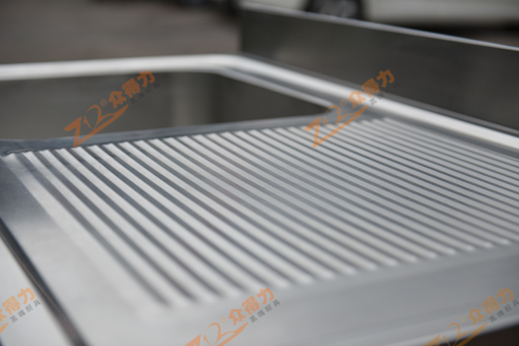 眾得力廚具高端白鋼品質(zhì),單星瀝水臺,單星瀝水池,整體采用201 1.2板材,一體拉伸星盆,板材整體沖壓一次成型,無死角,一級板材,紋路清晰有序,光澤度好,做工精細(xì)。