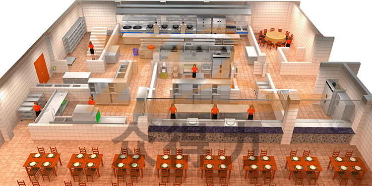 江西眾得力廚具有限公司生產(chǎn)銷售高端廚具,廚房設(shè)備,食品機械等,承接中央廚房設(shè)備生產(chǎn)、銷售、設(shè)計、施工、安裝、調(diào)試、培訓(xùn)一站式服務(wù),提供廚房整體3D效果圖,本3D效果圖為政企單位/學(xué)校食堂中央廚房整體效果:涉及的設(shè)備:四層疏條貨架、大炒爐、小炒爐、海鮮蒸柜、蒸飯柜、煲仔爐、湯爐、打荷臺、儲物柜、組裝式操作臺、壓面機、攪拌機、和面機、煮面爐、四門儲物柜、保溫售飯臺、全自動洗碗機、餐車、收碗車、收殘車、洗手池、雙溫冰柜、油煙凈化設(shè)備,排煙管道等系列商用廚具和食品機械設(shè)備。